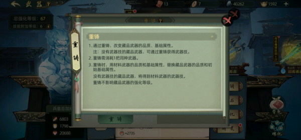 重铸:替换旧武器,提升属性。请记住,武器是用来替换的,而不是装备和卸载。