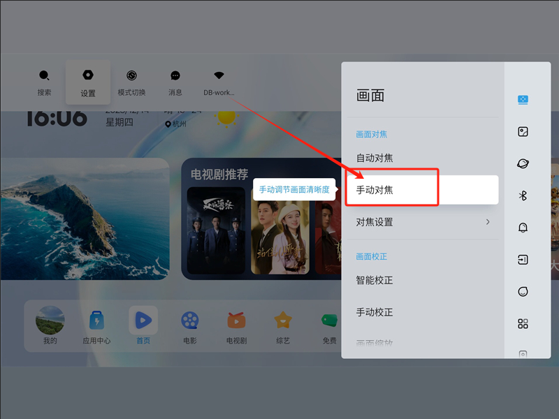 当贝D6X画面调清晰可以通过打开当贝D6X的对焦功能来调清晰,总共可以分为三步,下面为当贝D6X画面如何调清晰的详细步骤做具体说明。