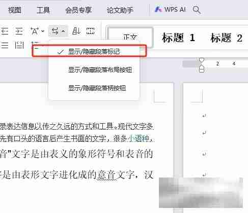 打开您的WPS文档,您会看到文档中显示的小箭头。