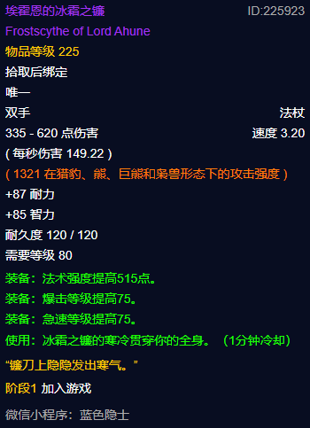 埃霍恩的冰霜之镰:提升法术强度、爆击等级和急速等级。
