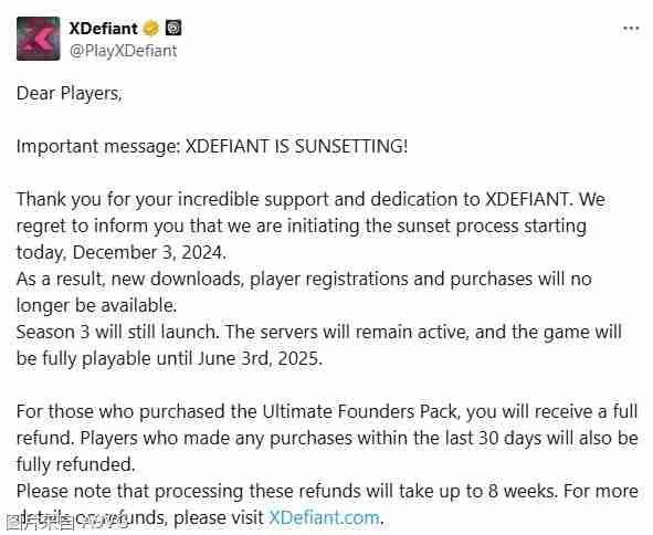 2024年育碧《不羁联盟》计划将于2025年6月3日关服