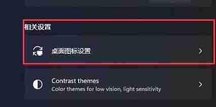4、接着进入“相关设置”下的“桌面图标设置”就可以在其中打开桌面图标了。