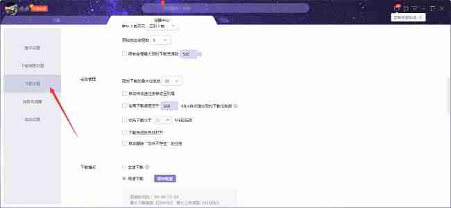 2、进入到新的窗口界面后,点击左侧栏中的"下载设置"选项。