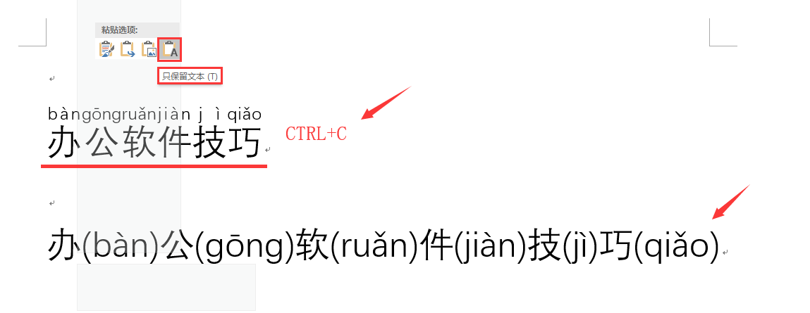 拼音指南中的汉字与拼音属一体,要分离很简单,直接复制,选择性粘贴只保留文本。
