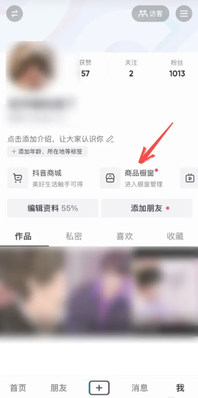 打开抖音APP,点击底部右下角的“我”进入个人中心,找到并点击“商品橱窗”。