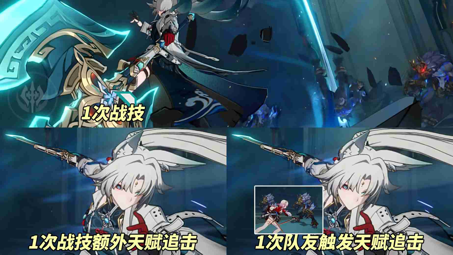 追加攻击:: 飞霄每回合有一次机会,在队友行动后获得2回合60%增伤并触发一次追加攻击。 飞霄下次行动时,该机会重置。此外,飞霄战技后会立即触发一次天赋追加攻击。简单来说,飞霄一个回合内最多可造成1次战技+2次追加攻击。