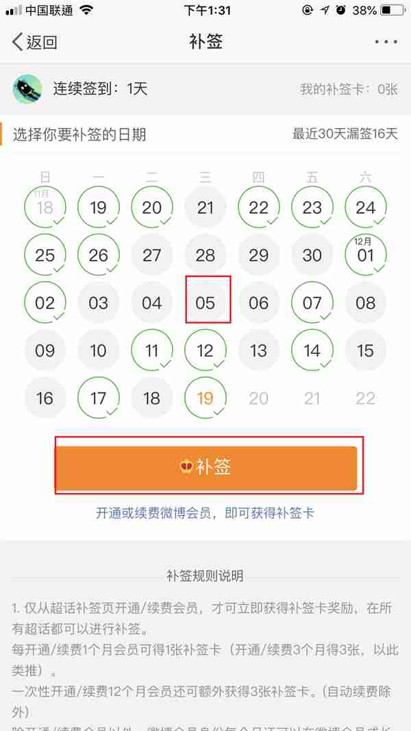 以下是如何使用微博补签卡的详细步骤: