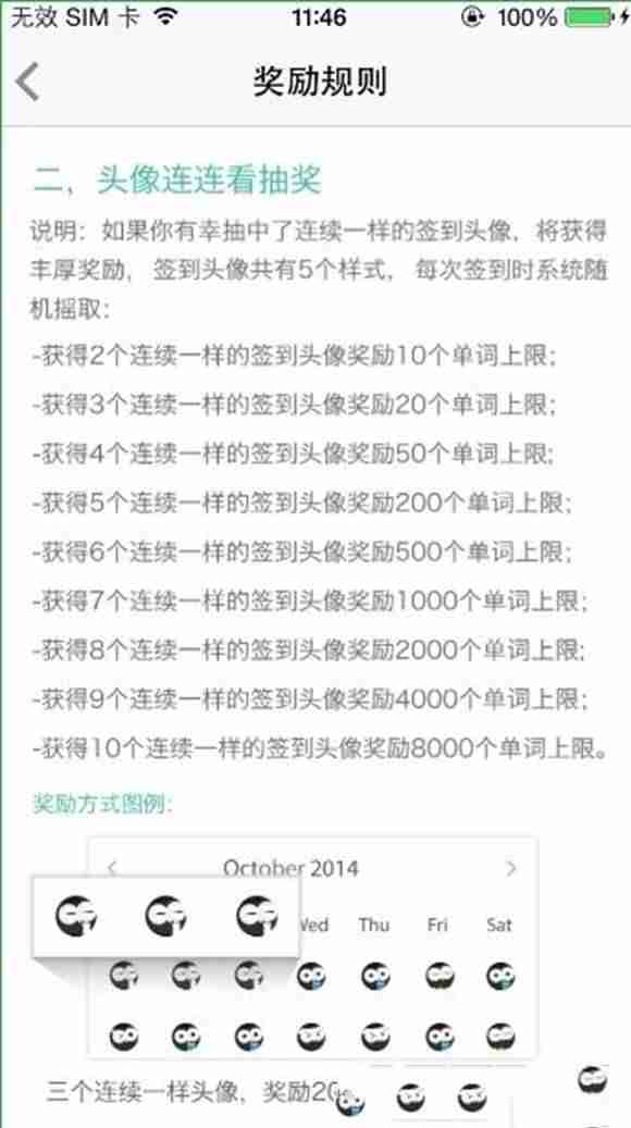 连续签到奖励:: 每日签到可获得单词上限奖励,奖励数量逐日递增,具体奖励请参考下图: